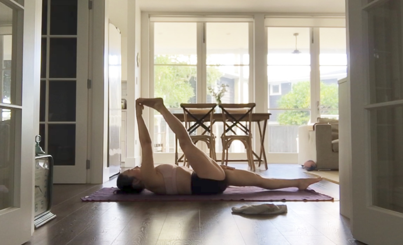 My favourite hamstring stretch from a safety perspective whilst we tread along the safe rather than sorry route is Supta Padangusthasana or Reclining Big Toe with strap. The reason why I love this so much for all students but particularly for those with restricted hamstrings is because your back is much more protected from bad alignment that can easily happen when standing.